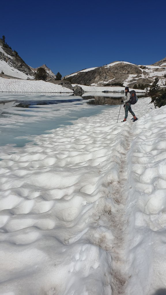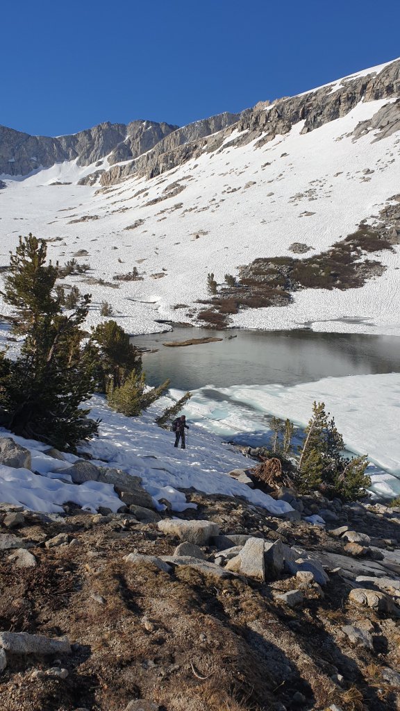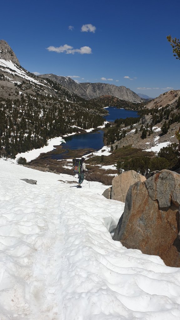 It was another long, slow but beautiful decent down from Mather Pass with many lakes in varying stages of frozen-ness to admire.