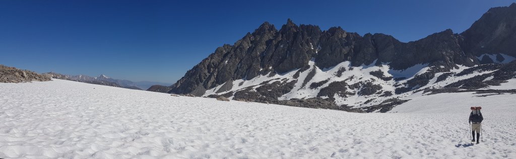 We set off shortly behind two other hikers from France and Japan who had camped near us at the base of Mather Pass. We decided to follow their lead with the route finding up the pass, which turned out to be a very good decision, as the route we had originally intended to take would have been considerably longer and more difficult.
