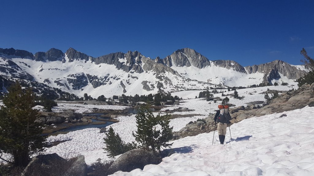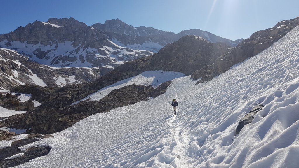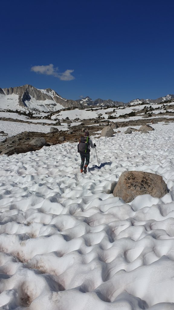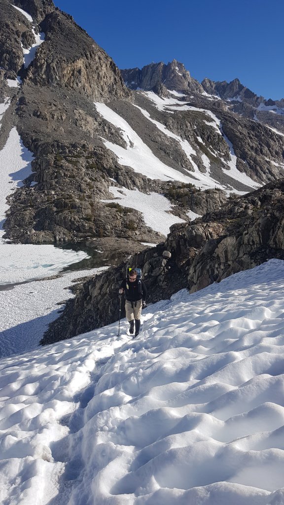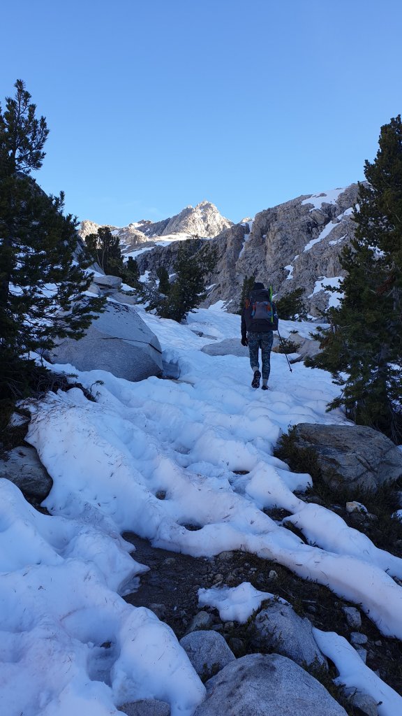We woke up relatively early as we still had over 2 miles of snow hiking before we would reach Bishop Pass again.