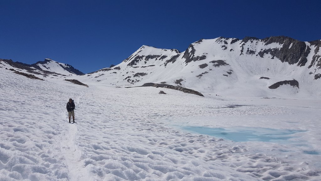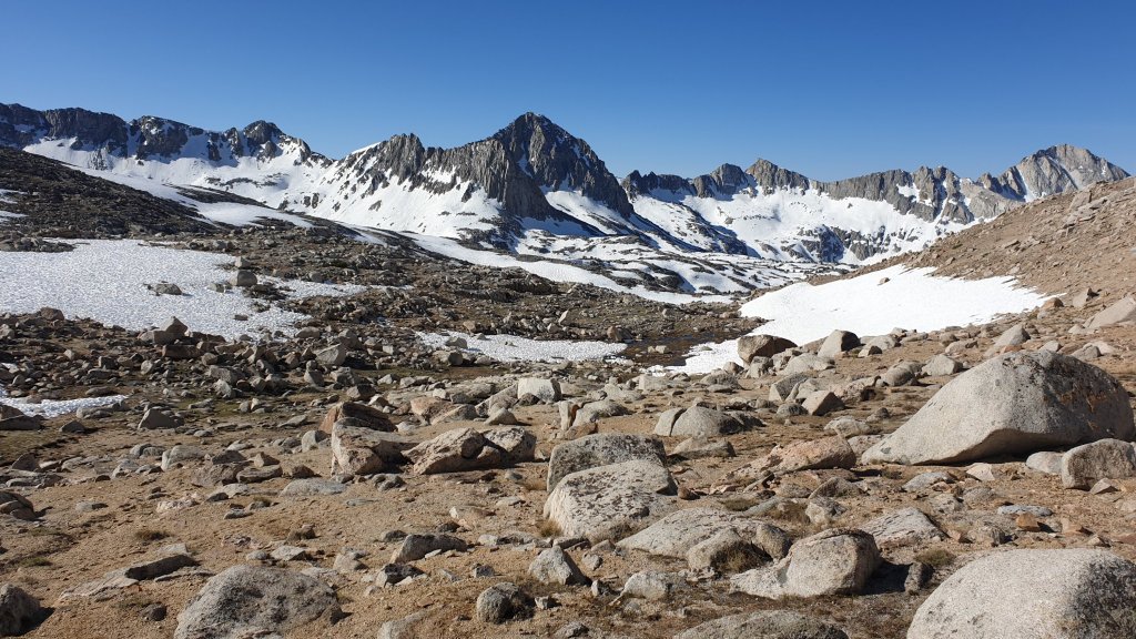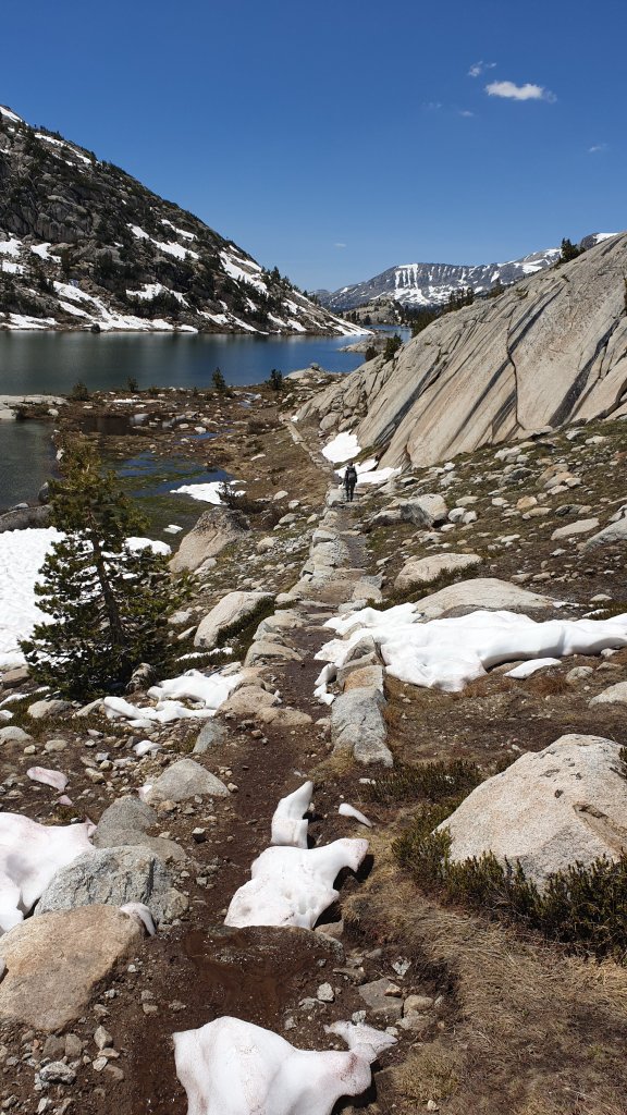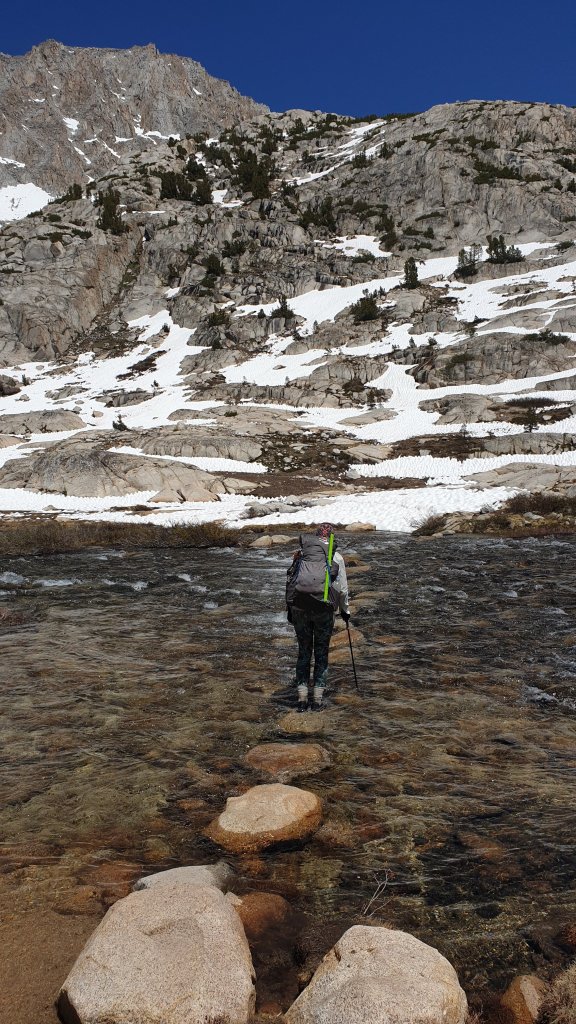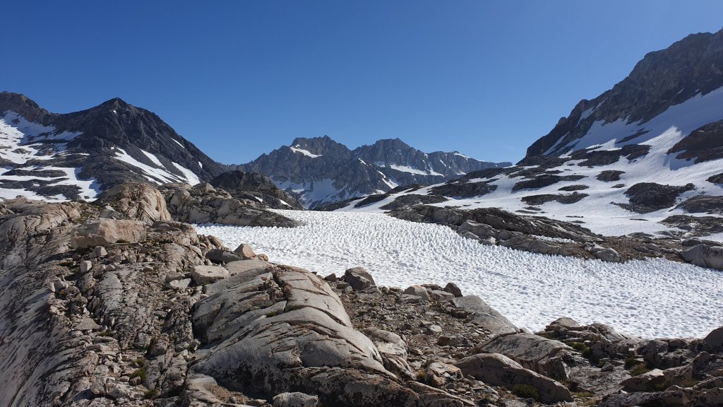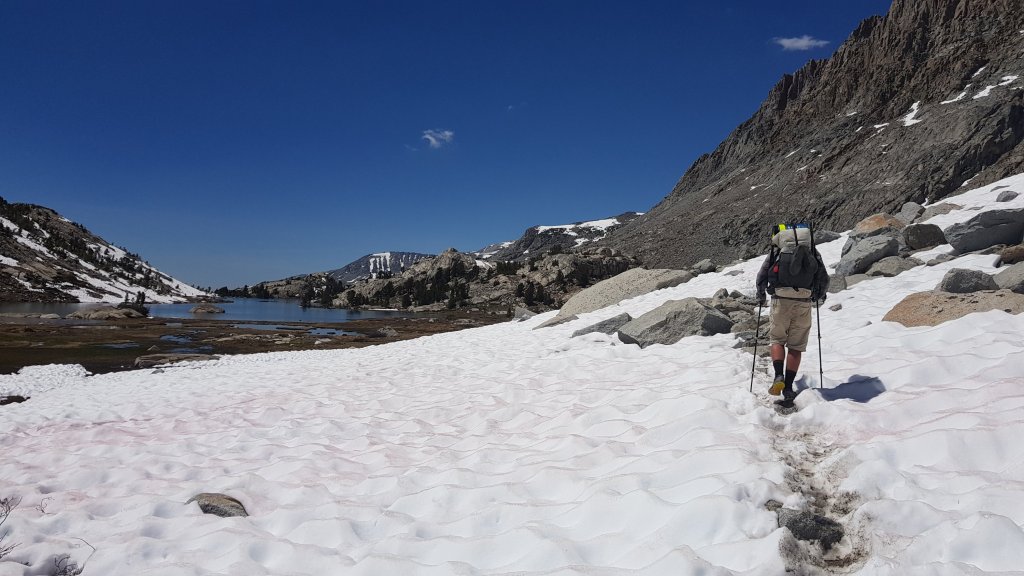 We woke up relatively early as we still had over 2 miles of snow hiking before we would reach Bishop Pass again.