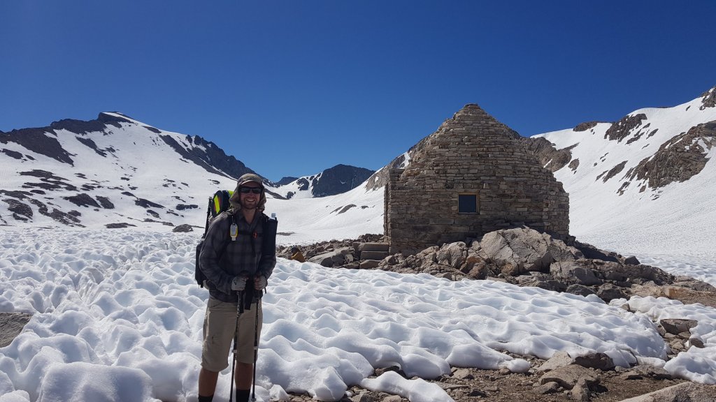 We reached the top of Muir Pass by mid morning and stopped at the emergency shelter to chat with a few other hikers.
