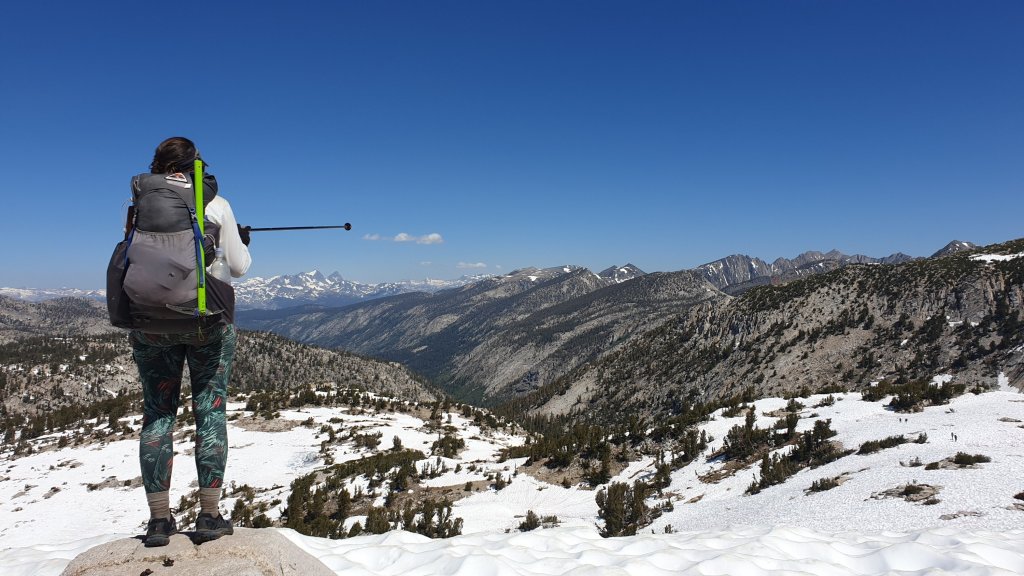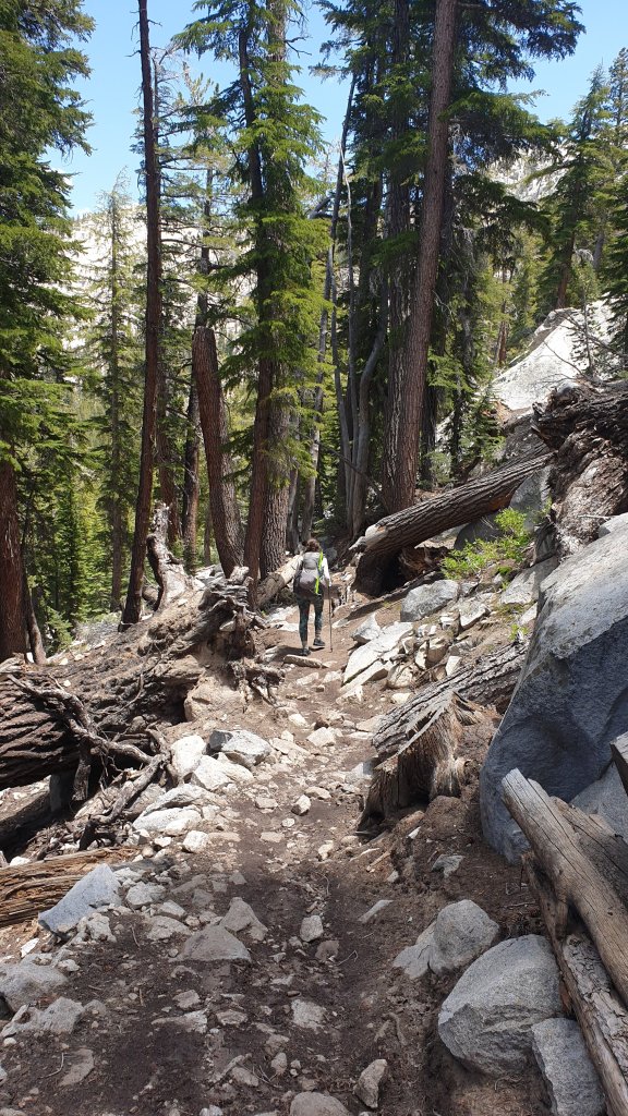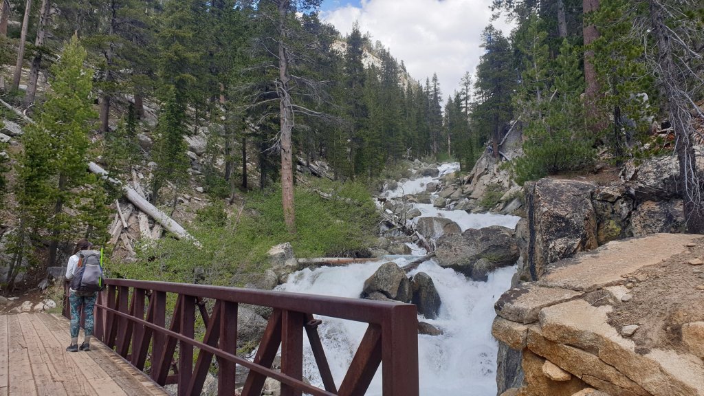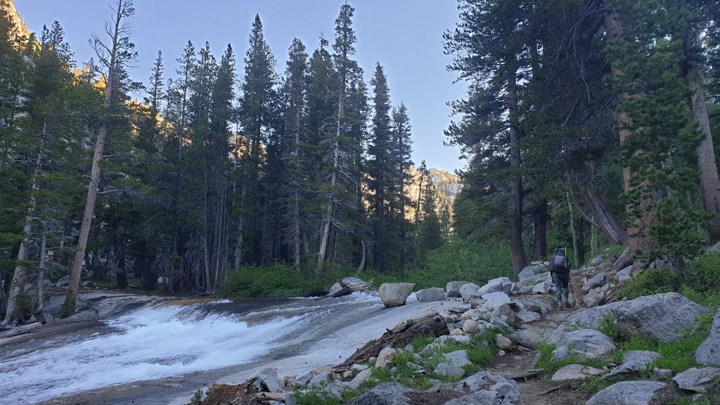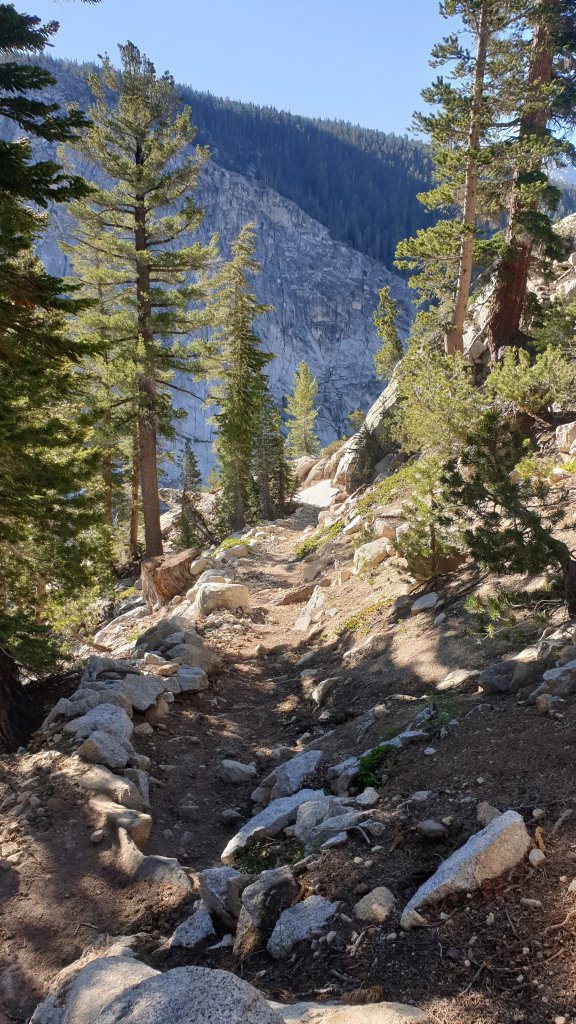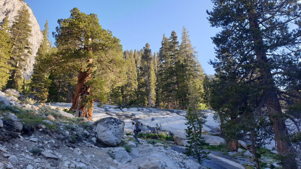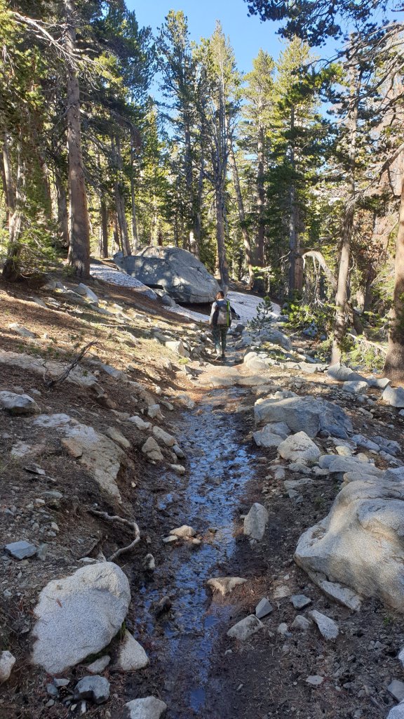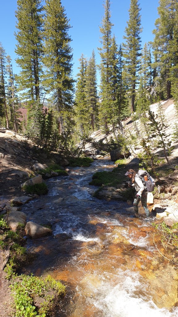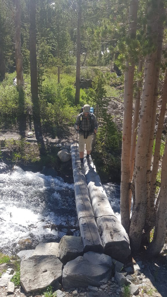 The morning was definitely a bit of a slog for me but it was also spectacular. Firstly climbing next to Mono Creek, we eventually reached a junction which our GPS app told us to cross via a log about 100m from the trail rather than the waist deep normal crossing. This turned to be good advice as we managed to stay completely dry.