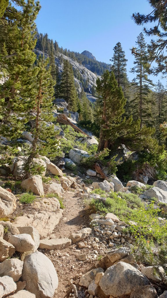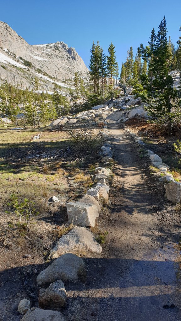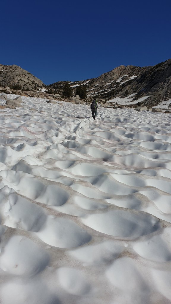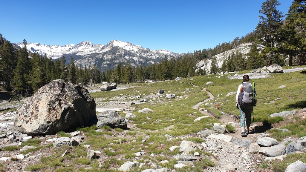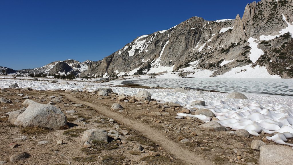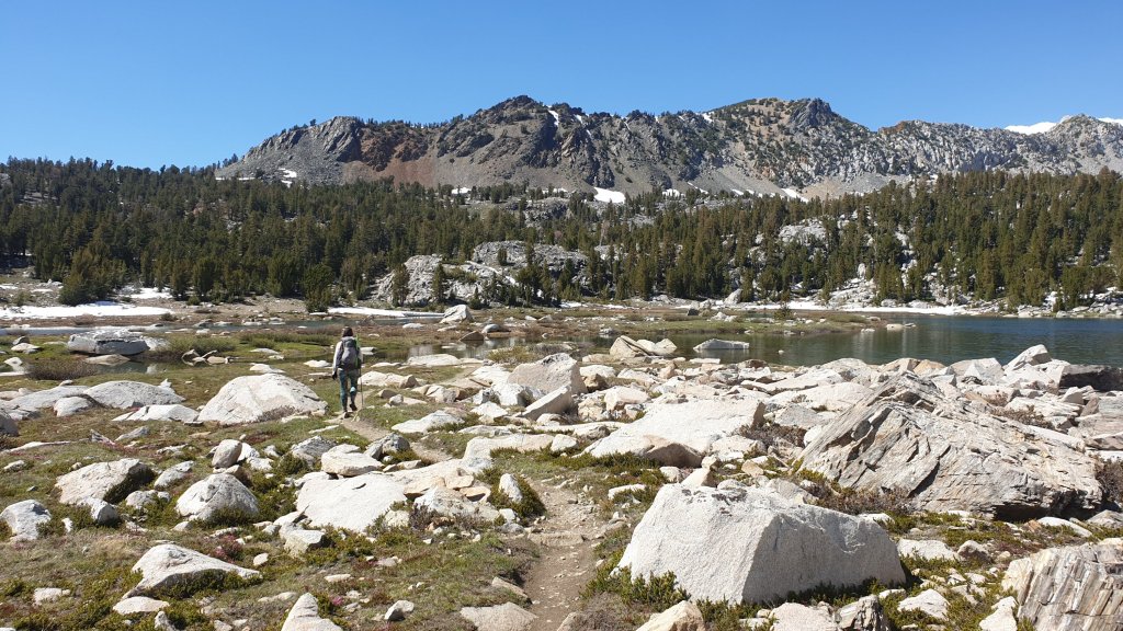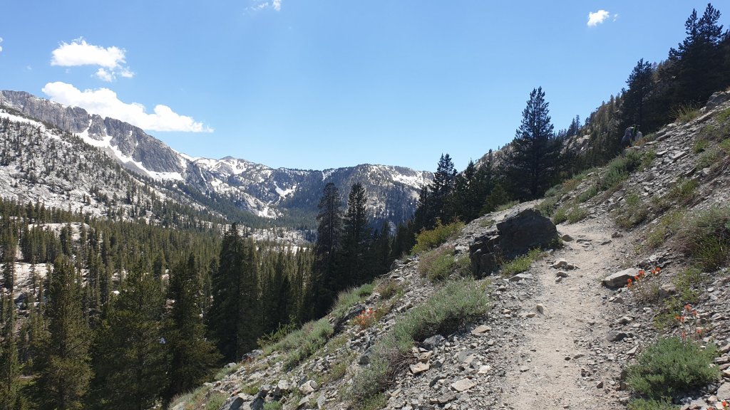 The plan is to reach Reds Meadow tomorrow. Reds Meadow is a ‘resort’ that caters for hikers but, for us, is also a gateway for getting a ride into the nearest town, Mammoth Lakes, by Saturday evening. With only 26 miles to go, we figured we’d take today a bit easier given the amount of climbing today, and aim for about 12 miles, leaving 14 or 15 miles of mostly downhill hiking for Saturday.