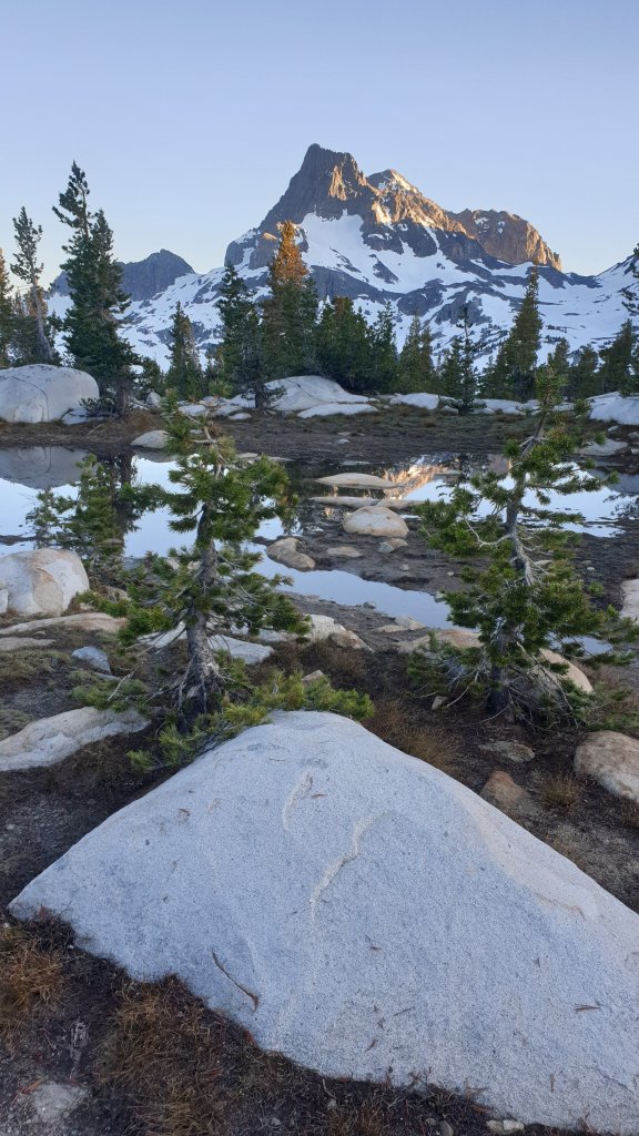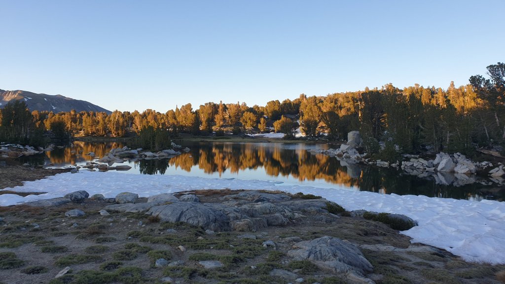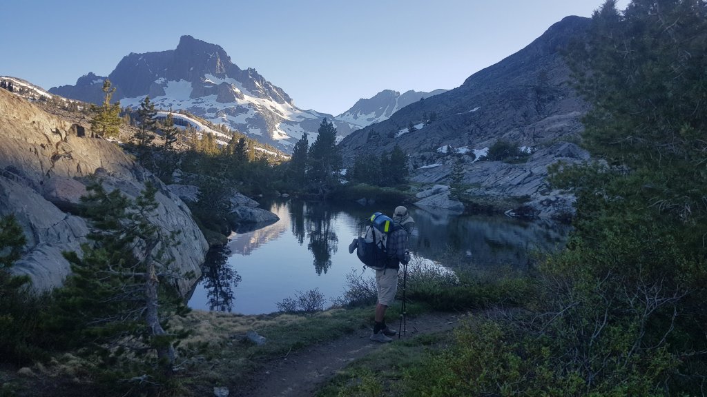 As we approached Thousand Island Lake, golden hour was just hitting. The light over the water was magical. It felt like we had arrived there at the perfect time of the day. We took in stunning views before continuing on.