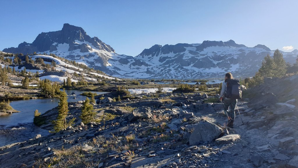 It was largely a day of climbing in altitude and once we popped out above the tree line we had spectacular views of the snow capped Minaret Range. It felt great to be able to enjoy the snow capped mountains without having to slog through the snow.