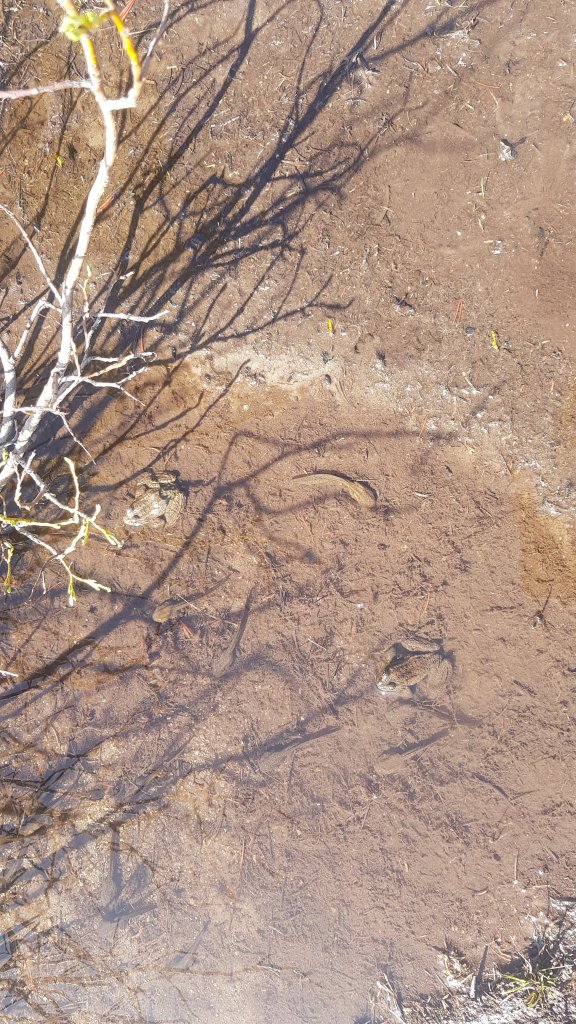 The water was perfectly still, casting reflections of the mountains above. The lakes were surrounded by large pieces of ice and snow, freshly uncovered by the warmer temperatures. Although the seasons aren’t abiding by the calendar at the moment, the wildlife sure know it to be sping, the lakes were teaming with large tadpoles and croaking frogs.