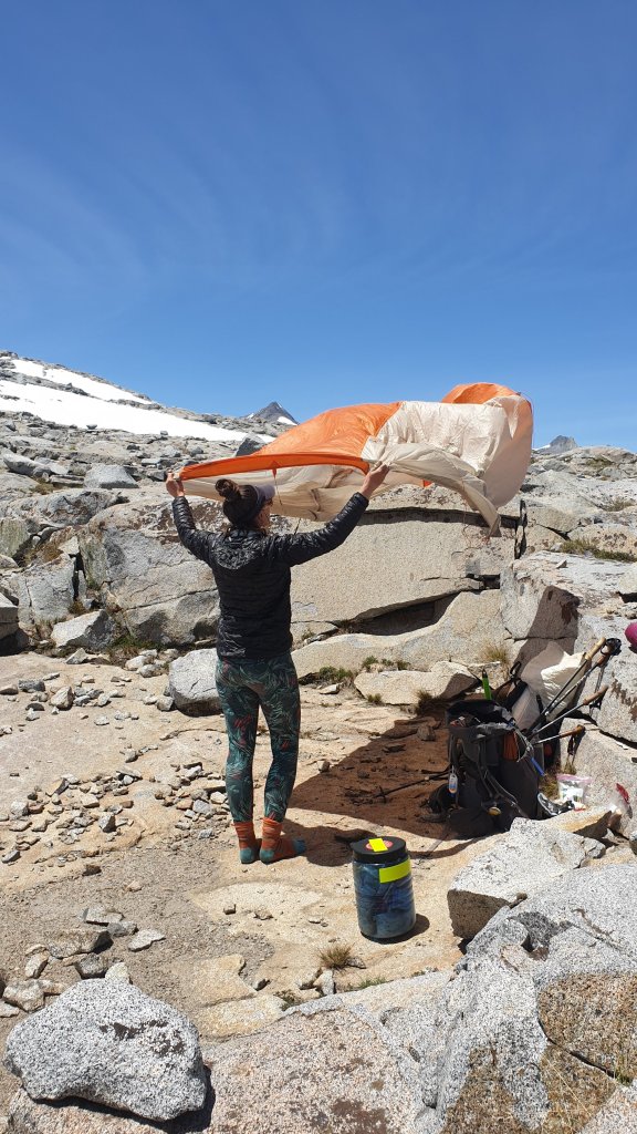 We found the most incredible site just 0.2 miles from the top of the pass. On one side of the tent we had views out over a mirror like lake and to the other, snow capped mountain peaks.