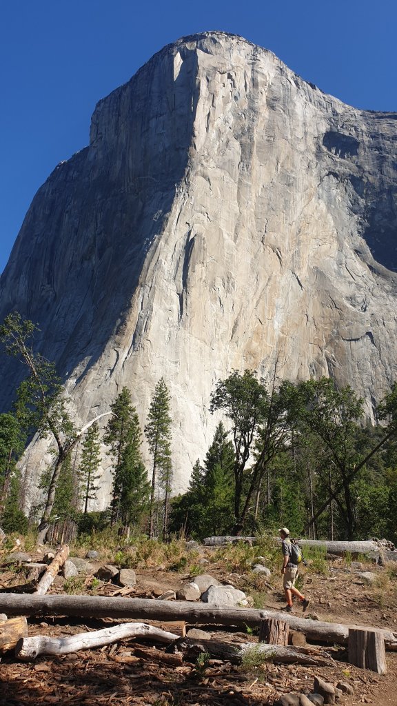 A few switchbacks down the trail we got our first glimpses of the spectacular El Cap. It looked magnificent in the afternoon light.