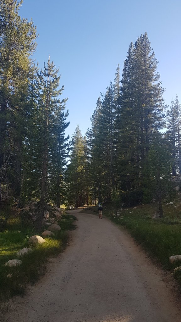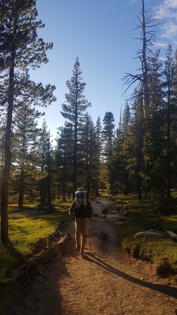 At 4pm we jumped on the bus back up to Tuolumne Meadows which was unexpectedly busy and enjoyed a scenic ride out of the valley. The bus ride takes a couple of hours so after a few more snacks from the Tuolomne Meadows store we headed back out on the trail.