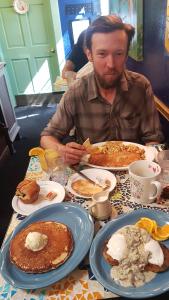 Upon reaching the highway, we started walking towards our planned hitching spot when a big American ute slowed down opposite us and the driver yelled out to check if we were ok. A short conversation later and we were on our way into Ashland. Leigh was happy to take the back seat and accompany the driver’s two dogs. He was a super interesting guy, telling us about his recent travels to Tibet to help collect and translate old Buddhist manuscripts, before dropping us off at the Morning Glory Cafe in Ashland for breakfast. The cafe turned out to have really good food and some of the biggest portions we have seen to date. Easily my favourite cafe breakfast in America to date.
