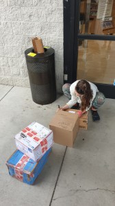 Our next assignment was to find some boxes to use to send our food forward. We tried unsuccessfully to get some boxes from a few of the supermarkets before eventually getting an empty Oreos box.