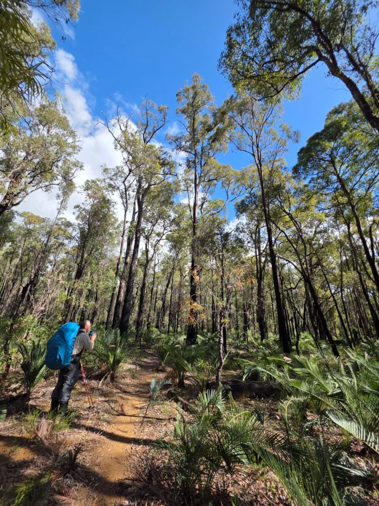Once the rain slowed I set out on the gentle 8km stretch through to Brookton Campsite. It showered on and off but I managed to stay fairly dry. I felt grateful that my rain gear was keeping me dry and that I would be enjoying full water tanks and blooming wildflowers further down the track. As the rain began to clear the sun shone through the trees once more. The foliage looked absolutely magical in the afternoon light, it was a true glimmer moment.