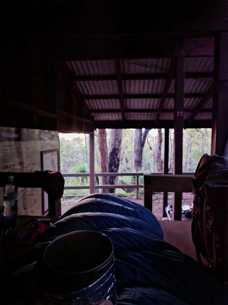 Monadnocks was busy by the time Jeff and I arrived. A group of 3 older hikers from Rockhampton had picked up a nervous solo Perth local and they were very spread out and a little reluctant to make room. The trio from Rockhampton in particular had made it clear they were not expecting anyone else in the shelter. The vibe was very different to what it had been with Alice and Jack. The group from Rockhampton were the type who compare gear and question other peoples choices. I enjoyed the opportunity to chat but felt content in my decision to hike solo, knowing I wasn’t bound to spend time with anyone in particular.